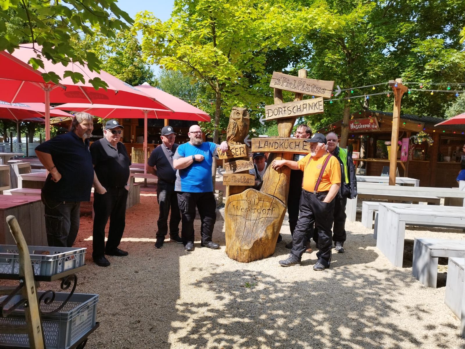 In gemütlicher Runde im Biergarten der „Kurve“ saßen wir zusammen – in guter Koexistenz mit den zahlreichen Motorradfahrern, die dort ebenfalls eine Pause eingelegt hatten.