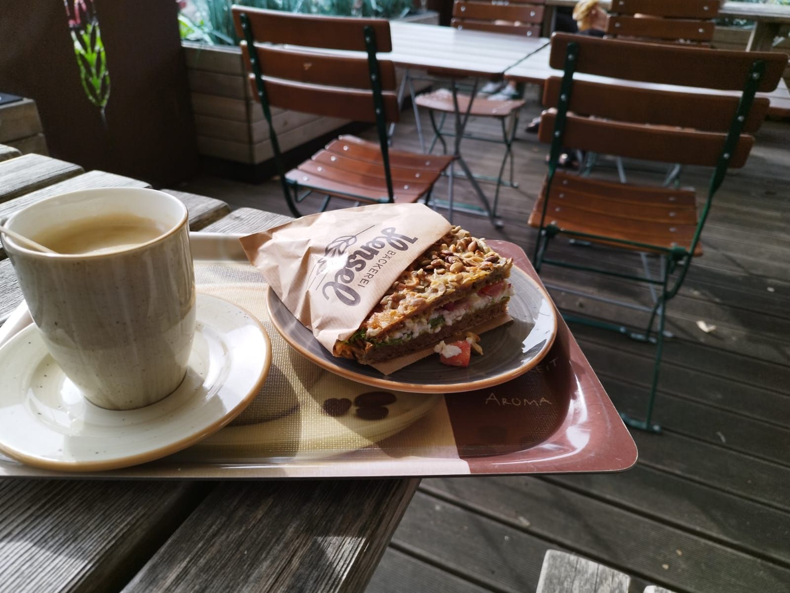 Dort wärmten uns Kaffee, Tee, belegte Brötchen und Kuchen, und wir wurden von der freundlichen Bedienung bestens versorgt.